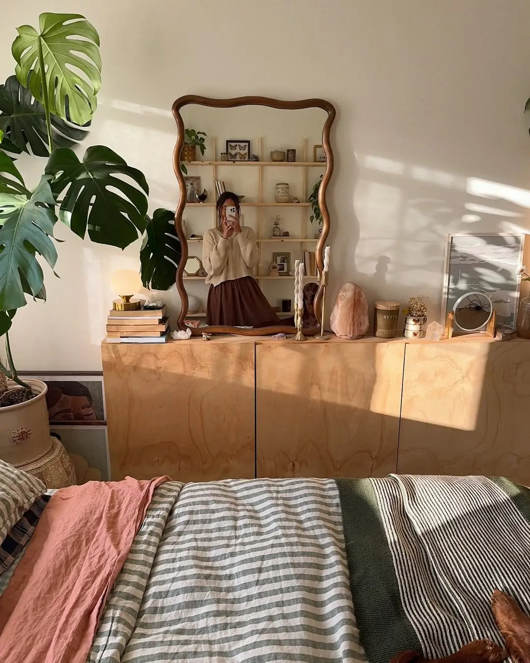 Natalie Doef always nails the cozy aesthetic, and this sage green striped bedding is no exception. It’s subtle and so charming, especially for fall. The sage tone is soft and calming, but it still feels fresh and seasonal.