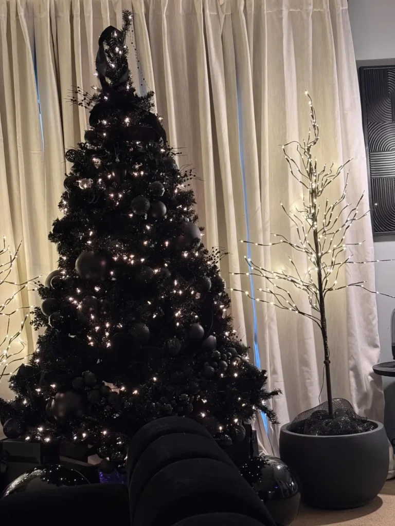Shoutout to the creators who make bold decor like this feel totally effortless. The trick is to keep the tree cohesive by picking ornaments that match your room’s color palette so the black bow feels intentional, not random.