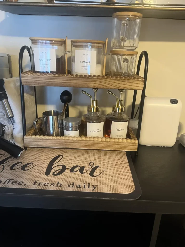 This is where your small coffee bar starts to feel really elevated. Gather all your coffee essentials and decant them into cute containers.