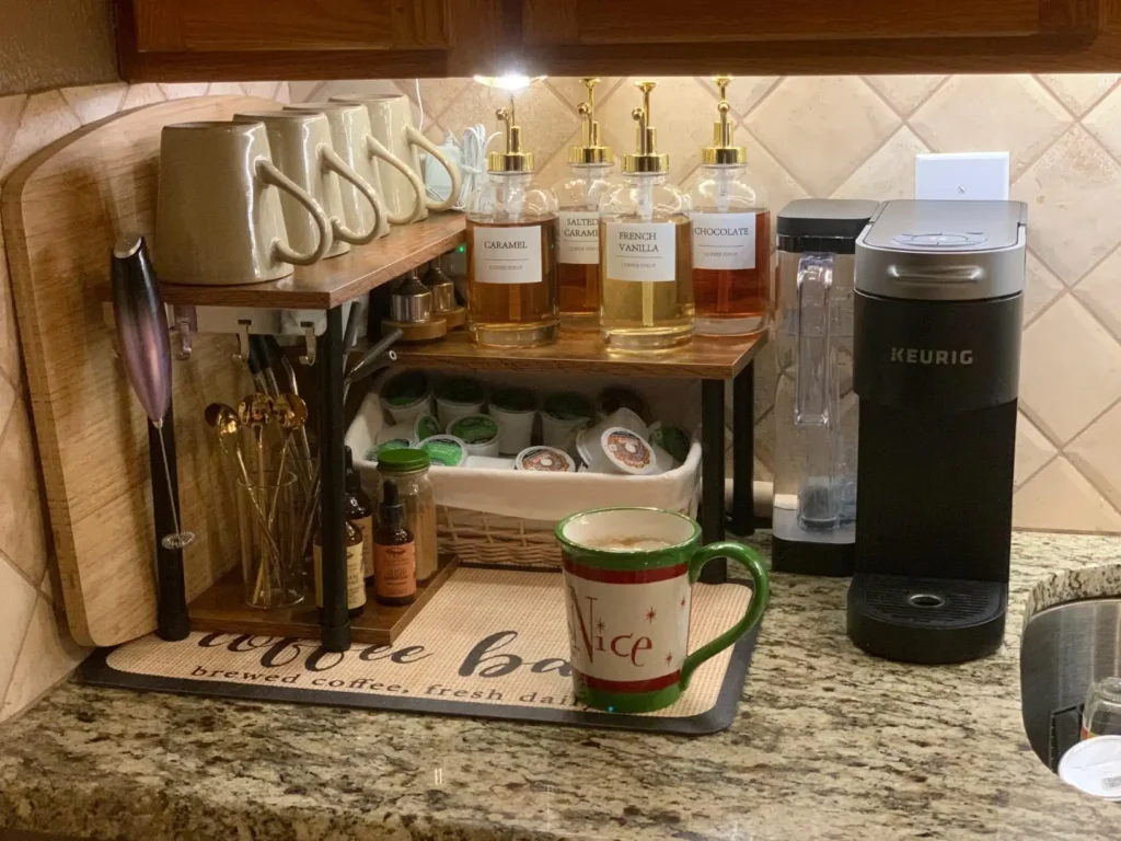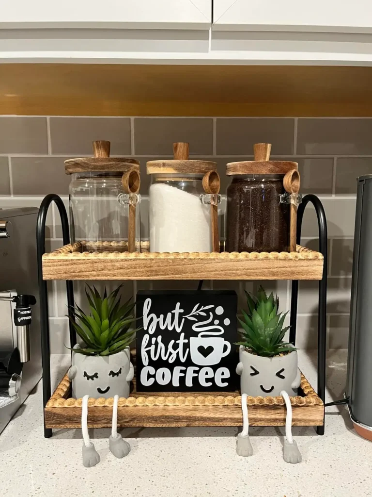 Add a cute coffee sign, a cozy coffee mat, or a small framed quote. These little details make the space feel finished.