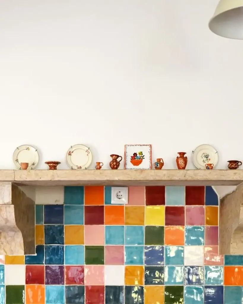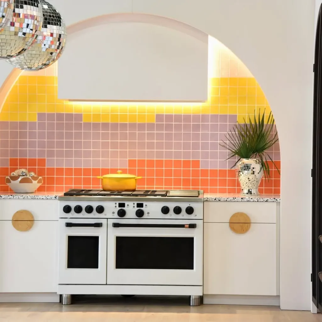 Your backsplash is the perfect way to add a little dopamine décor without going all out on the cabinetry and colorful retro appliances.