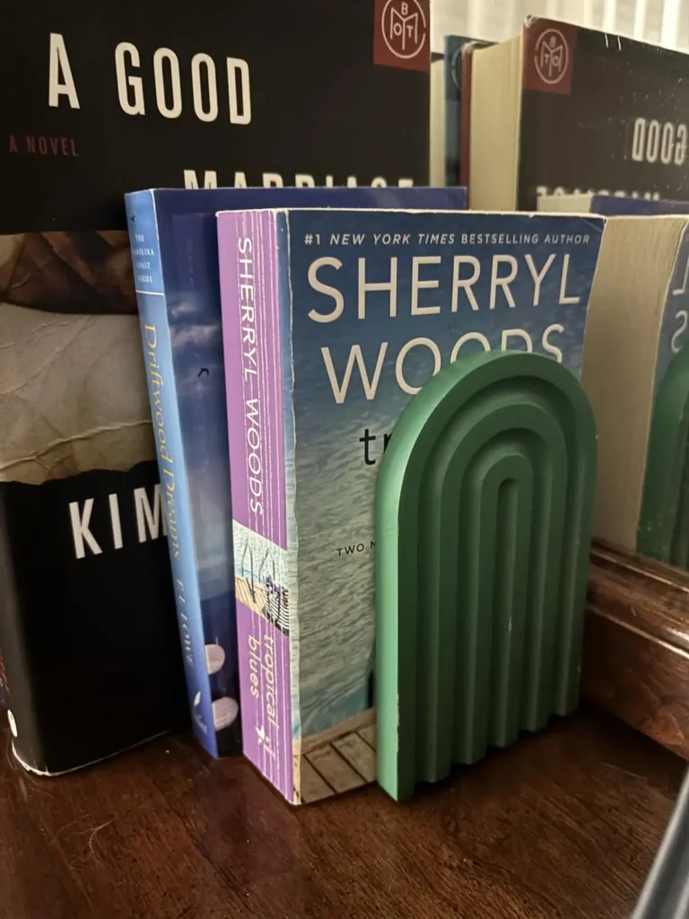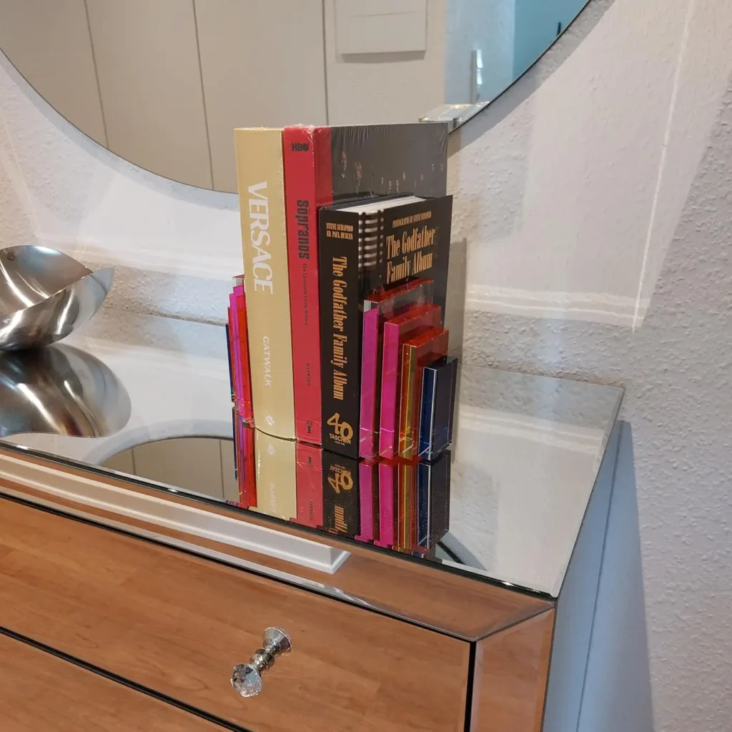 Colorful book ends are an easy way to show personality without guilt. They add joy, color, and intention to your shelves while still being practical.