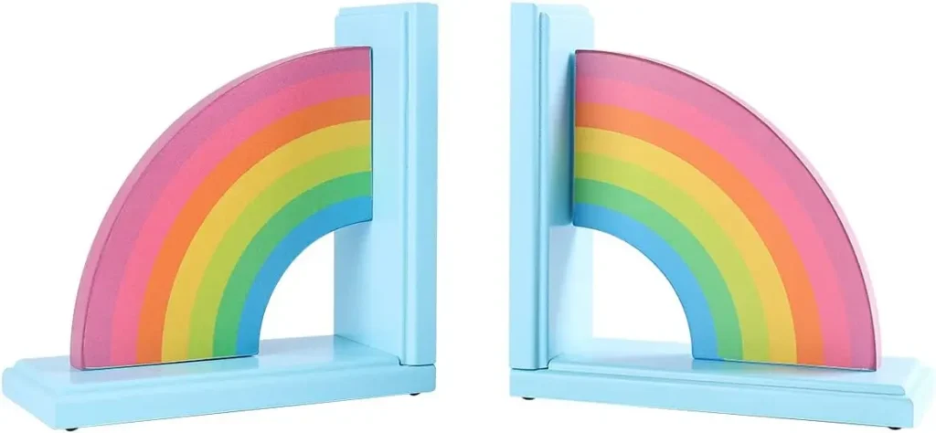 Rainbow wooden bookends are cheerful, sturdy, and perfect for kids rooms. Made from good quality wood, they make books feel approachable and fun.