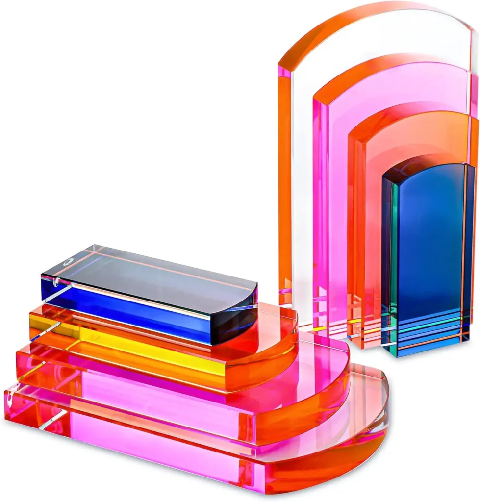 The reflective, colorful finish catches light beautifully, especially near a window or lamp. They come in triangle, arch, and rectangle shapes, making them perfect for modern or eclectic shelves.