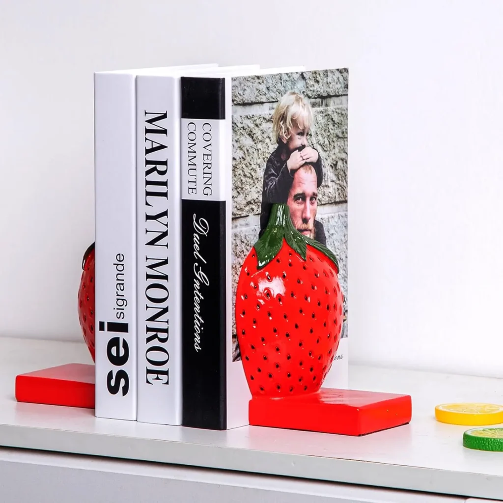 Strawberry shaped bookends bring instant charm. Made from resin with a glossy lacquered finish, they are secure, sturdy, and great for heavier books. They also make adorable gift ideas.