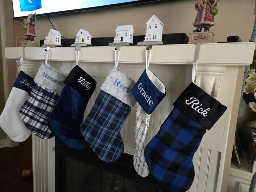 These personalized plaid stockings are such a sweet touch for family setups. You can customize each one with names or initials, which makes them perfect for kids or guests. The variety of designs like reindeer or Christmas trees bring just the right amount of holiday fun.