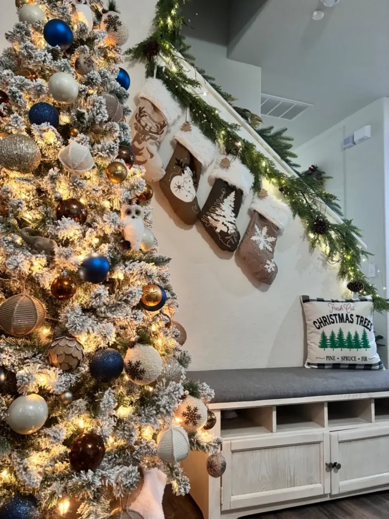 These look great in rooms with navy or gray accents. Add some silver ornaments or frosted garland for a coordinated, cozy finish. It’s cheerful but still calm enough to keep your décor feeling peaceful.