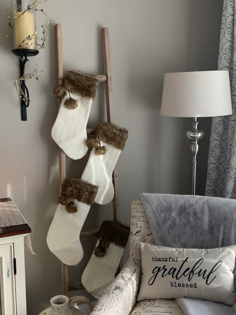 I remember when I had my first apartment, it was super tiny with no mantle , and that did not stop from me hanging my stocking on my bed frame. If you are looking for some creative ways to hang your stockings without a mantle, check out this post.