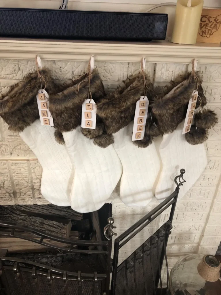 Mix these with solid red or beige stockings for variety, and hang them with twine or small wooden name tags for that personalized feel. They also look adorable in kids’ bedrooms or play areas.