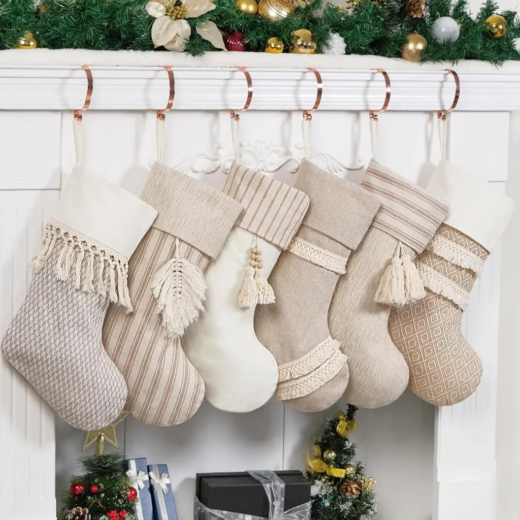 Let’s start with the base of it all, the stocking hanger. These bronze beige holders are sturdy, sleek, and surprisingly elegant. They grip the mantel securely without scratching, which is a win if you care about keeping your furniture safe.