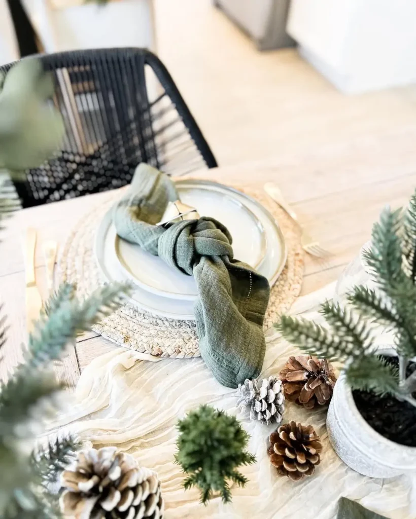 If your style leans minimalist but you still want that cozy layered look, this is such a simple win. Add a small sprig of greenery and a neutral ornament for that gentle Christmas touch.