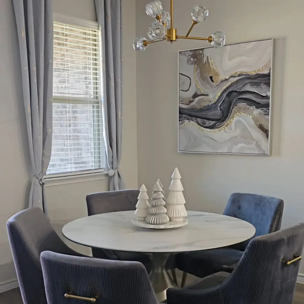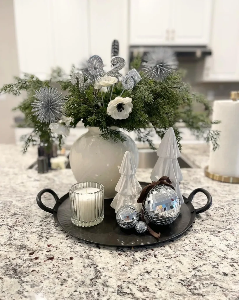 Pair them with white ceramic trees, glass candles, and a vase with greenery. The mix of textures feels modern but still cozy. The disco shimmer keeps everything lively without disrupting the neutral palette.