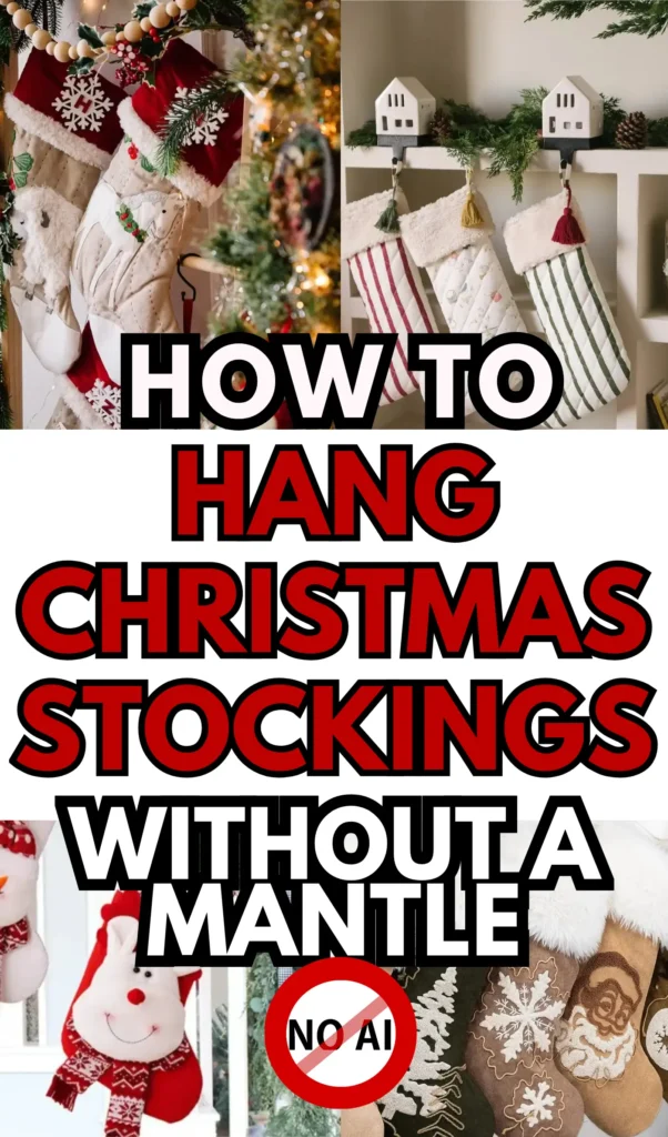 This one’s a personal favorite because it looks effortlessly stylish. Lean a wooden or metal ladder against the wall and hang your stockings on the rungs using ribbon, twine, or little hooks. It gives instant rustic farmhouse Christmas vibes, kind of like Joanna Gaines moved in for the season.