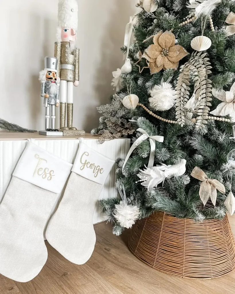If you have kids, this one’s especially fun because they’ll love finding their stockings under the tree on Christmas morning. And if you’re all about aesthetics, try using stockings that match your tree’s color scheme for a cohesive look. Think neutral knits for a minimal setup or bold reds and greens for classic holiday vibes.