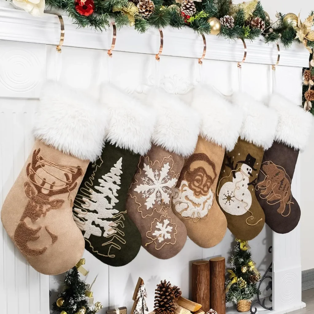 - A Soft Suede Stocking with Fluffy Faux Fur, perfect for a Rustic Cozy décor theme