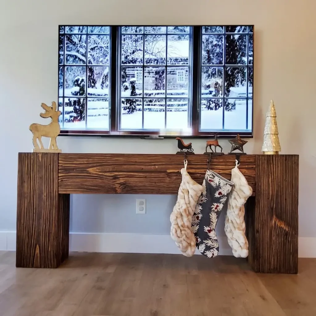 It adds instant Christmas charm to your setup without needing a fireplace. Plus, you can easily decorate the top of your dresser or stand with candles, pine branches, or mini reindeer figurines for that cozy, layered look.