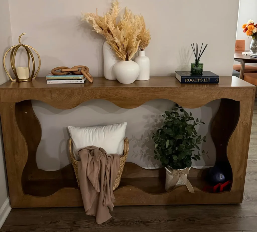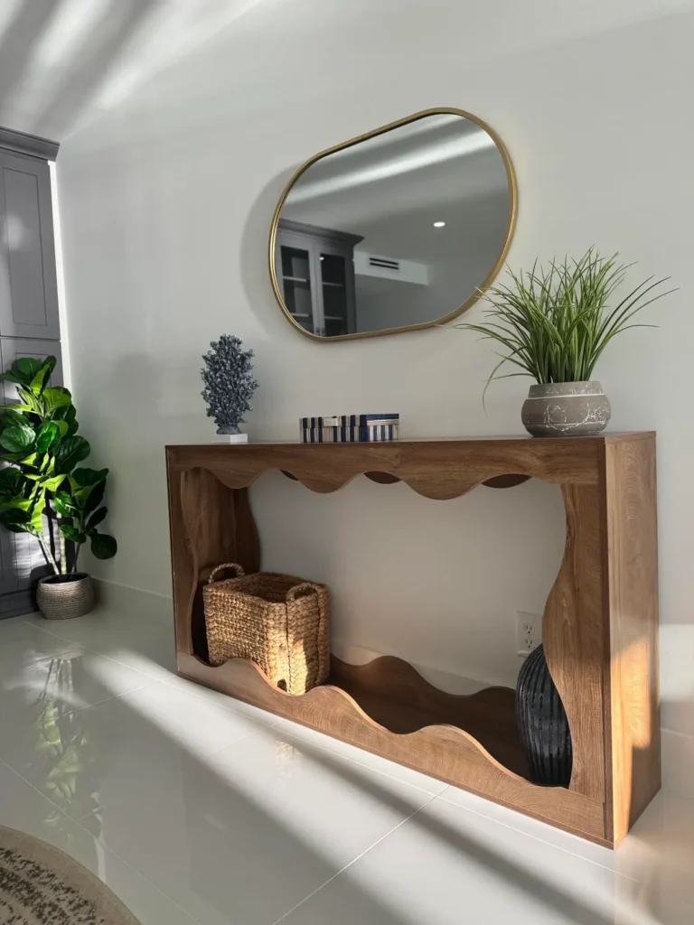 It adds movement, softness, and a little fun to your entryway. Pair it with simple decor so the shape gets the attention it deserves.