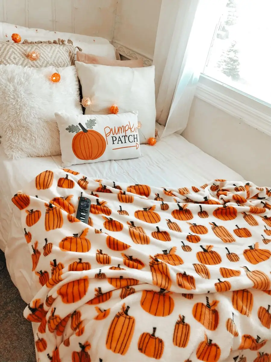 Blankets are basically the unofficial mascot of fall. A cute pumpkin print throw blanket is not only perfect for keeping you warm during those late-night study sessions but also adds instant seasonal charm to your space.