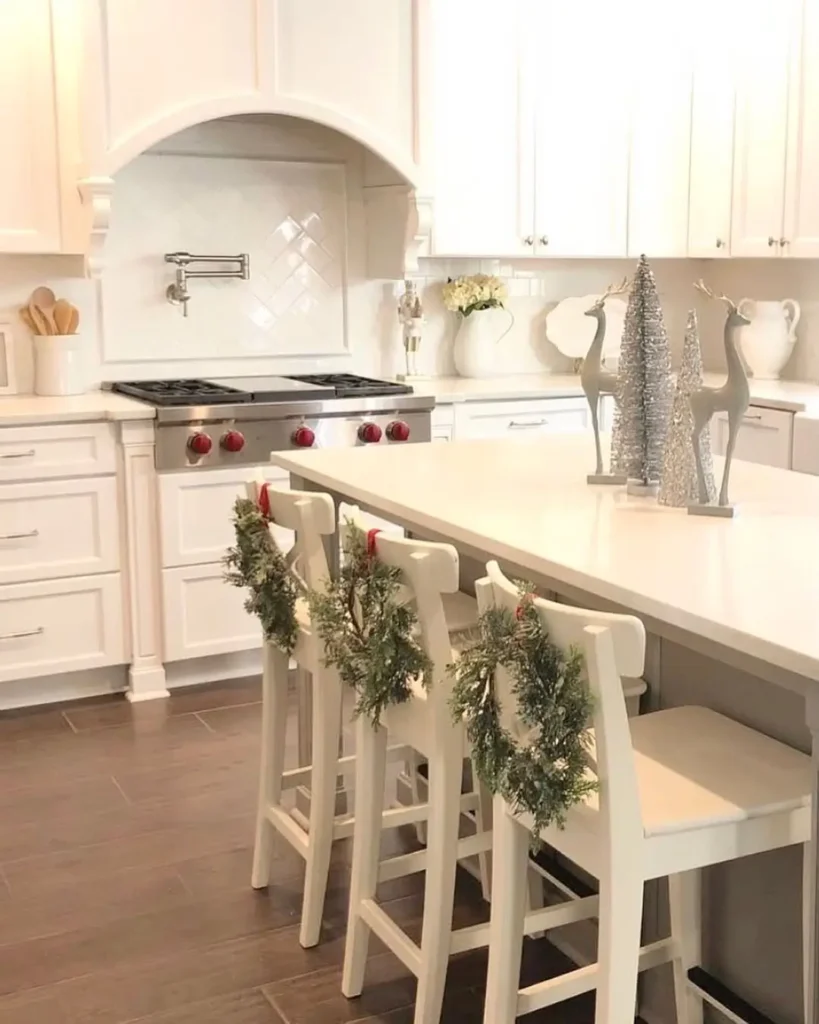For those who prefer simplicity, Sandra from homebysandra.k shows how stunning minimalism can be. She styled her Christmas kitchen island with silver mini trees and a matching white reindeer.