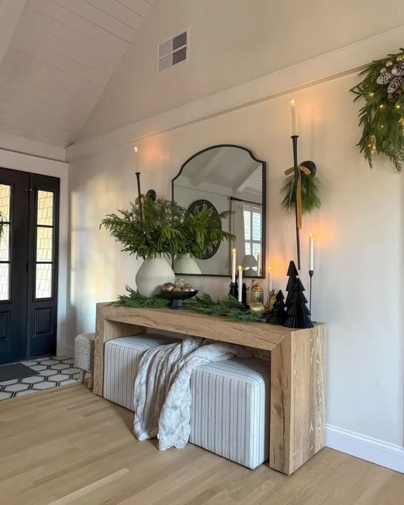 If you prefer a cleaner, less cluttered look, take notes from @jeany.myneutralhome. Her minimalist Christmas entryway table proves that simplicity can still feel festive.