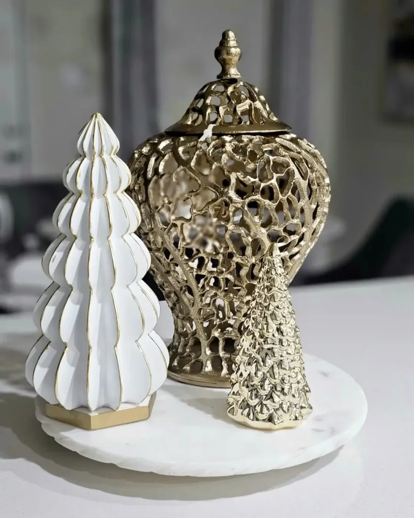 Every holiday setup needs a little sparkle. Metallics are the secret to keeping neutral décor from looking flat.