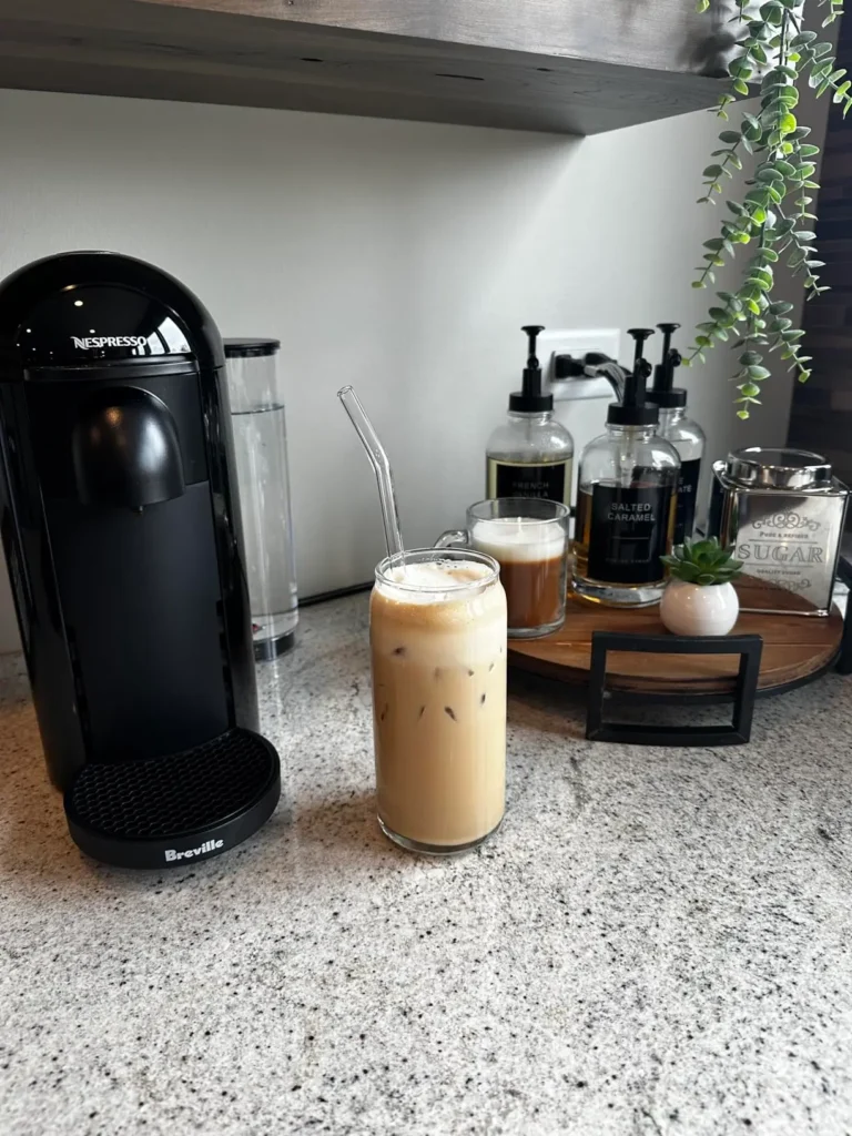 A coffee machine is the heart of it all. I am obsessed with my Nespresso, which felt like a serious glow up from my old Keurig. Choose what works for your routine and space.