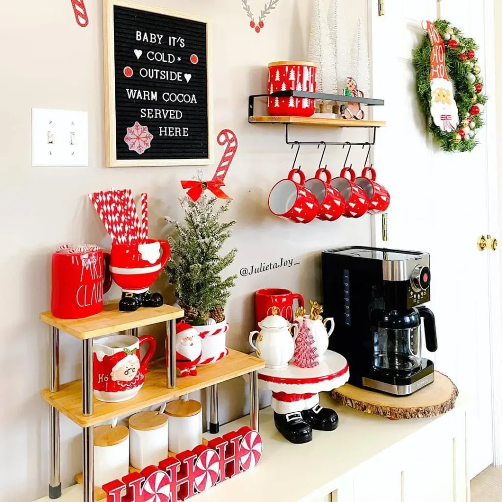 Created by julieta joy, this Santa themed coffee bar is cozy Christmas magic. No batter way to reflect that holiday spirit.