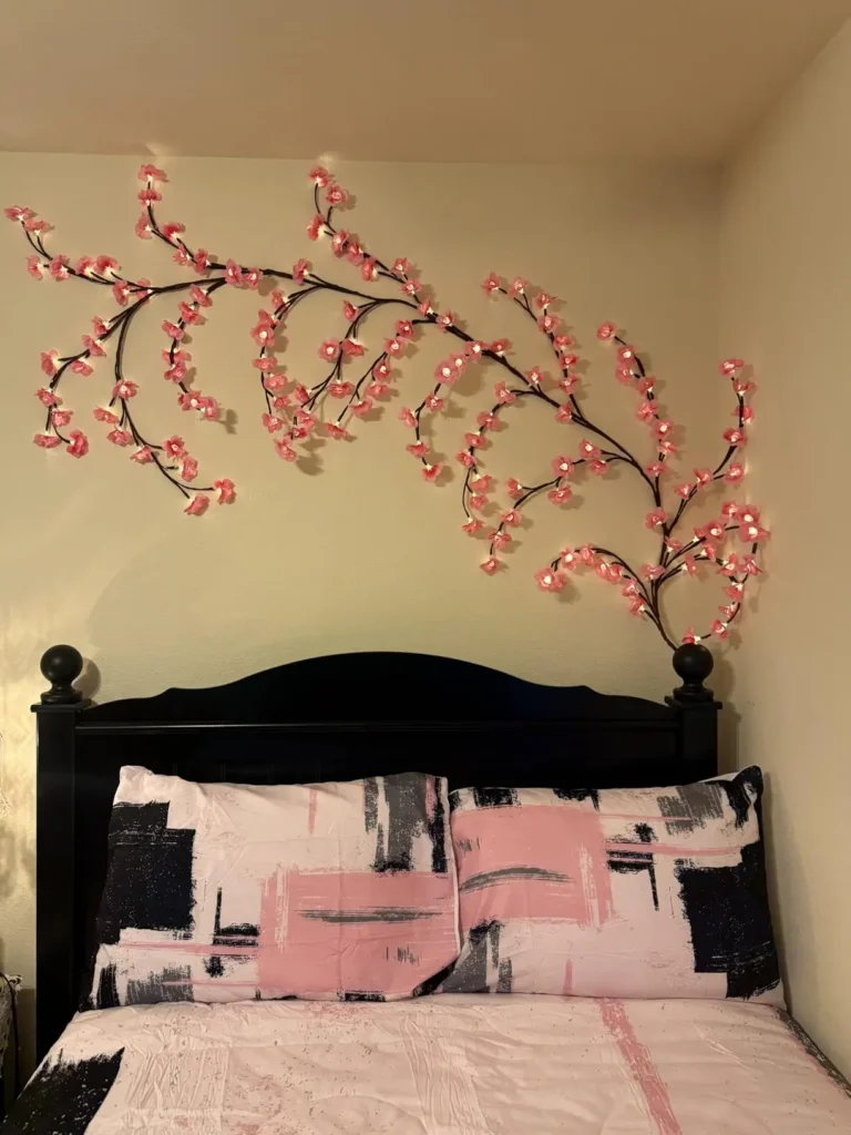 Faux cherry blossom vines are perfect if you love pink accents. The built-in lights add a soft glow that feels romantic and playful.
