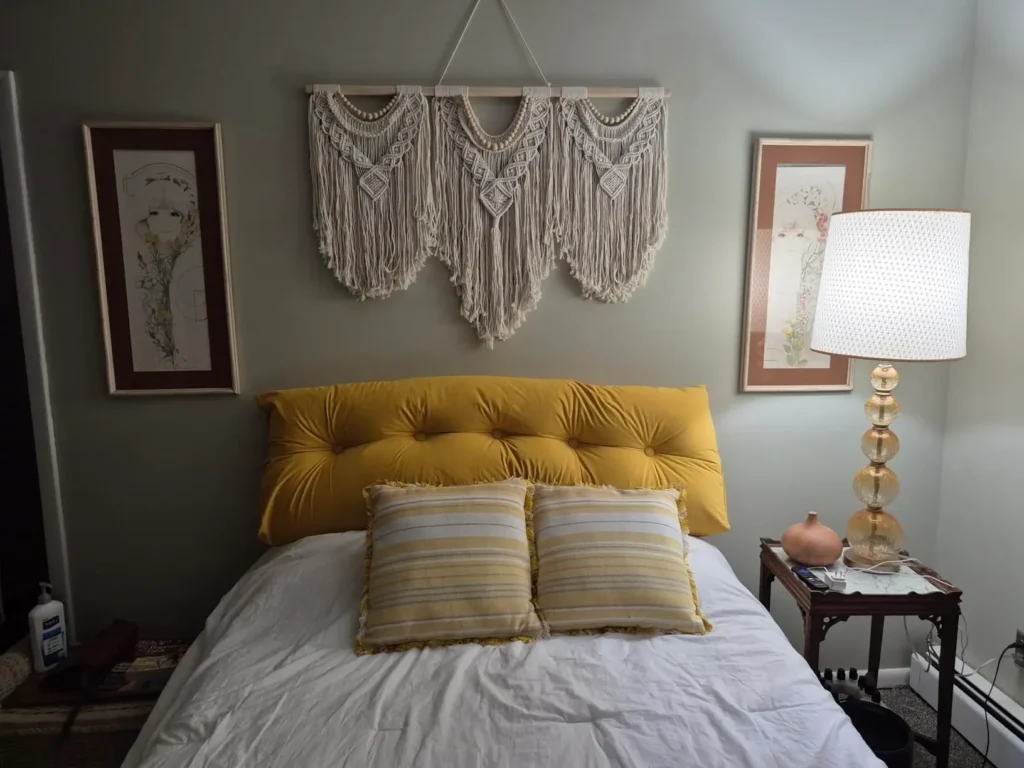 Macrame wall hangings bring earthy, boho vibes that feel calm and grounded. A neutral macrame piece above the bed adds texture without stealing attention.