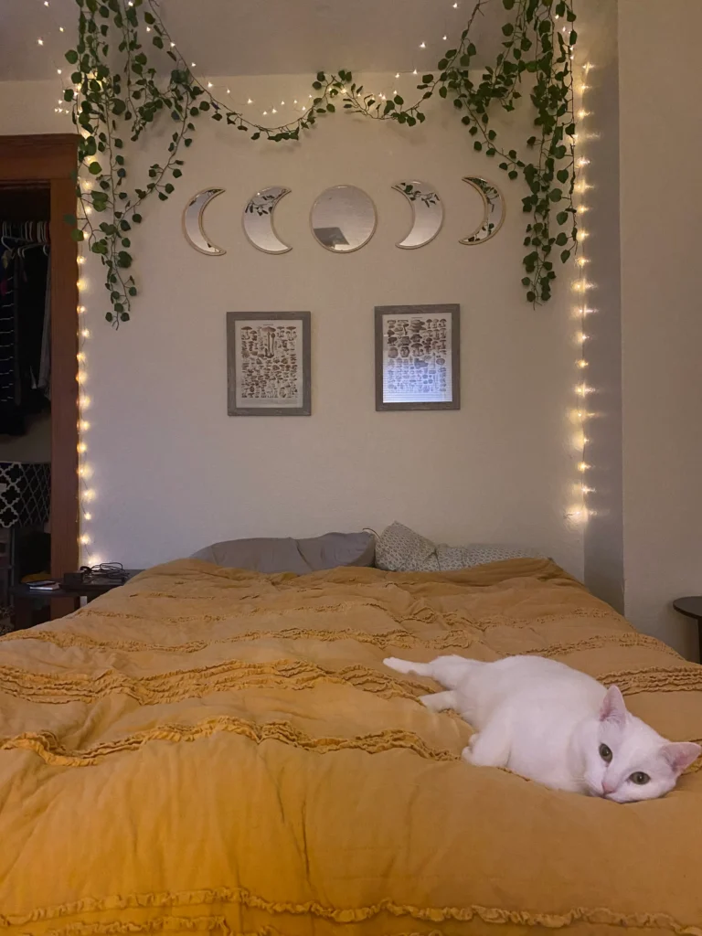 This is such a fun way to decorate wall above the bed if you love cozy, whimsical vibes.