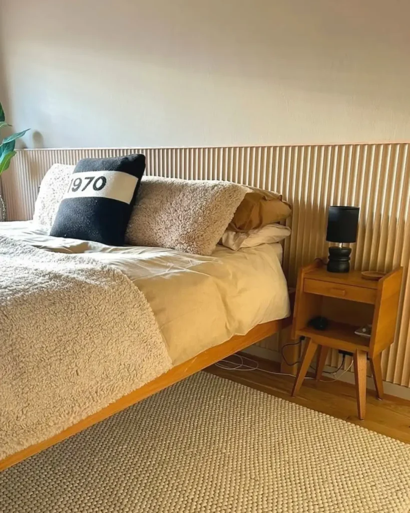 Shared by @the_cotton_mill_interiors, this fluted panel wooden headboard is sleek and timeless.