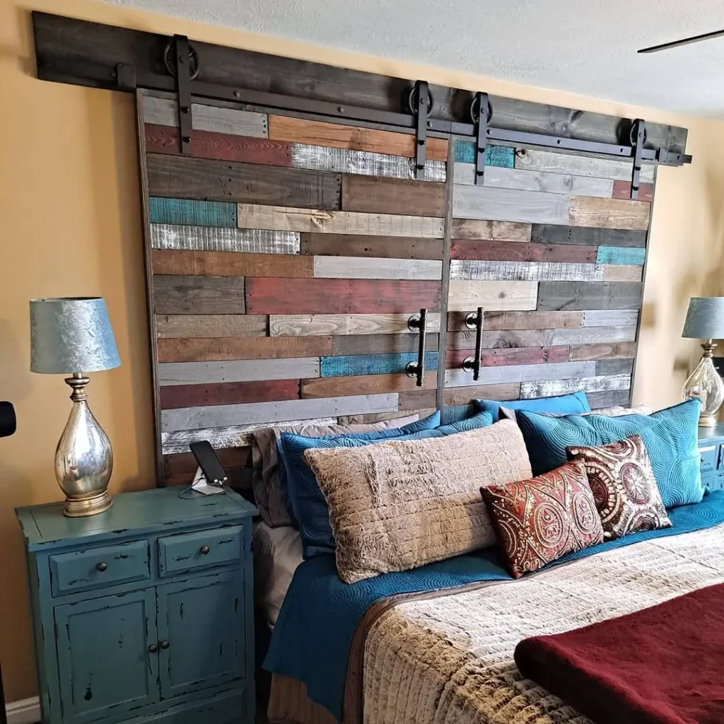SLC Pallet Walls offers pallet wood barn doors that can double as a statement wooden headboard.